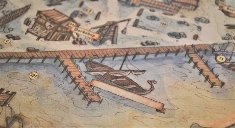 Бились часа 3, я так вообще до конца не дожил. Зато двое прокачались до 3 уровня. После вернулись во Фростхэвен зализывать раны и пожинать плюшки. На собранные ресурсы построили лодку, наклейка которой появилась рядом с причалом. Лодка понадобится для одного из доступных сценариев, без неё туда не попасть. Вместе с ней вскрыли конверт с морскими событиями, – они тянутся вместо дорожных, когда идёшь в “лодочные” миссии.