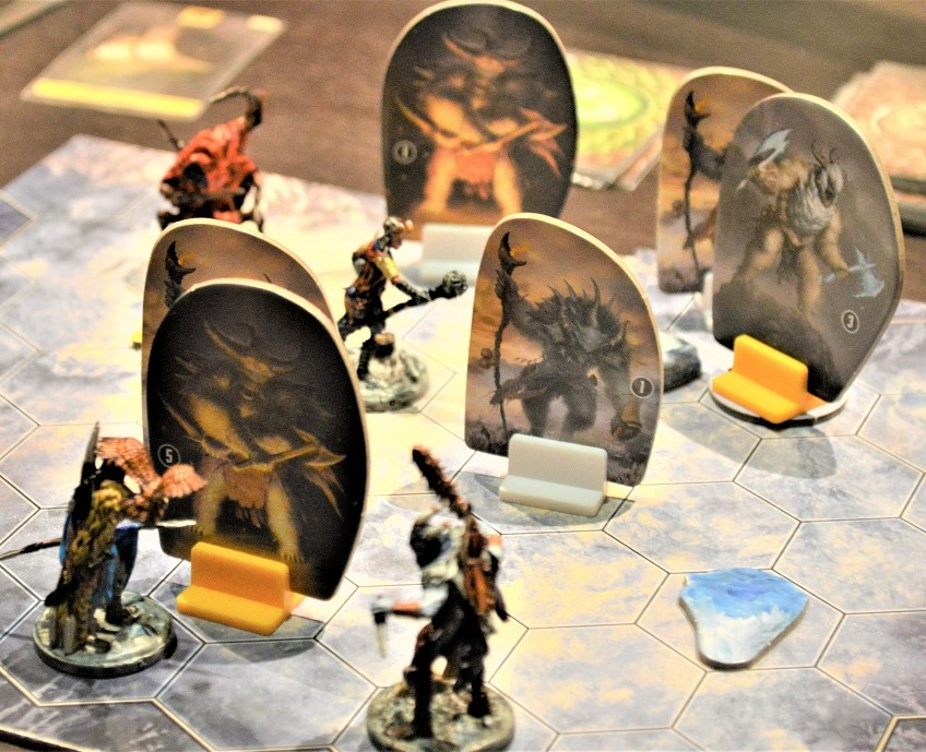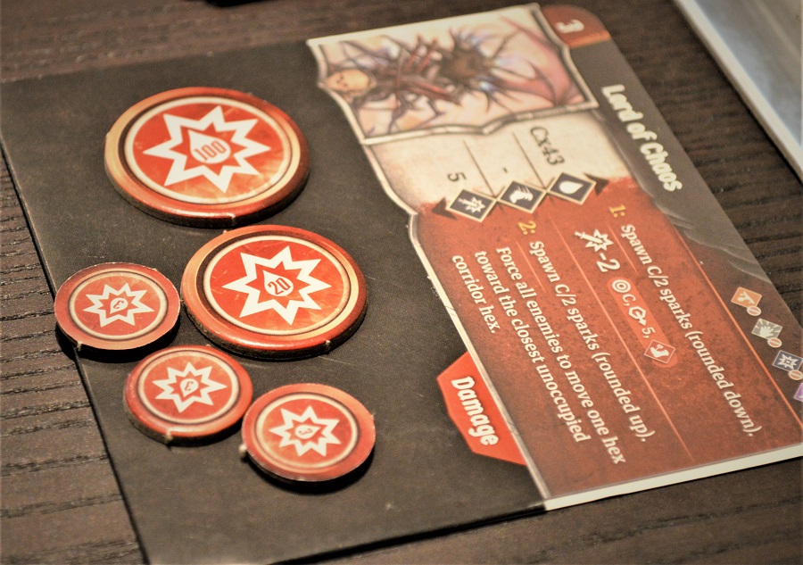 Элемент случайности добавили и в одну из последних миссий на шпиле, где, ступая на определённые гексы и герои, и враги тянули жетоны хаоса с разными эффектами.