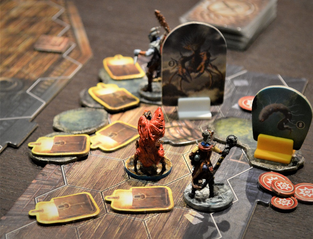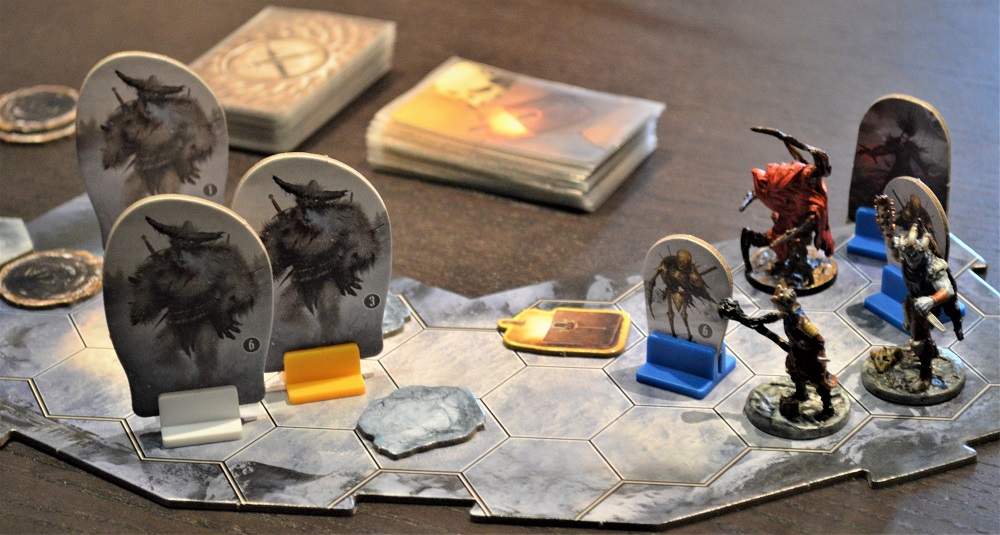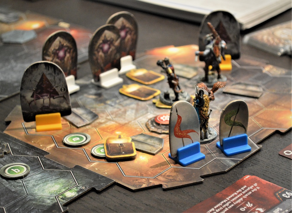 Тут победили лишь со второй попытки. Совершили пару тактических промахов, да и с жетонами тотально не везло – врагам доставались хорошие, а сами тянули только пакостные.