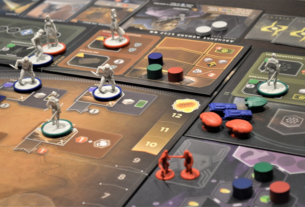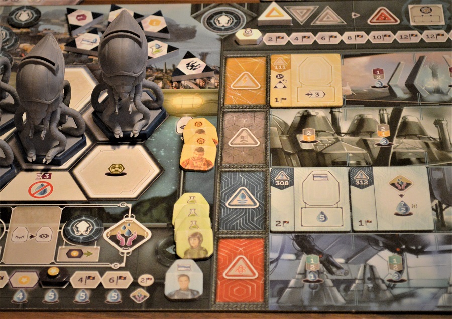 Рабочих довольно много и, беря во внимания их навыки, доступные локации и действия соперников, распланировать раунд эффективно не так-то и просто. Кроме этого, у каждого игрока имеется планшет фракции с лидером, что добавляет существенной асимметрии. Вдобавок, здания позволяют настраивать некий уникальный движок по добыче ресурсов, очков и т.д.