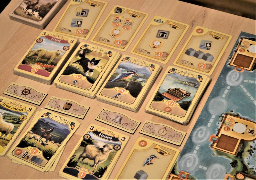 Дело в том, что в НЗ заметно расширили колодостроительный аспект. Личную колоду теперь можно пополнять не только овечками разной ценности, но и специальными бонусными картами. Розовая овца, собака, переправа и птичка доступны всегда, а вот из 10 других стопок на партию случайным образом выбирается 4.