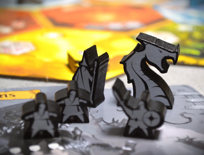 И дело даже не в уникальных фракциях (отличия между ними минимальны, лишь пару свойств для двух юнитов) и фишке со специализацией миплов (она определяет число бросаемых кубов в бою и правила размещения), а в приятном бодром течении самой партии и реиграбельности за счёт карт приключений, коих по 13 штук на каждый из 8 элементов. Садиться снова любопытно именно за счёт предвкушения невиданных доселе сочетаний, азарта при доборе магических карточек и постоянных стычек.