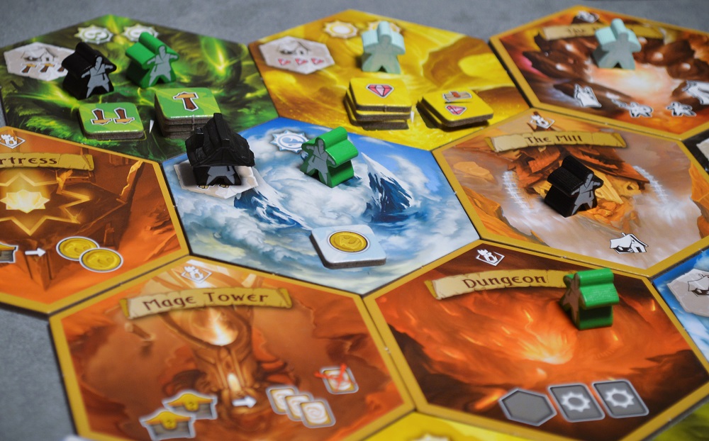 Итак, события развиваются в вымышленном и окутанным магией мире, где участники посредством размещения рабочих выясняют, чья фракция сильнее. В свой ход ты либо выставляешь мипла на общее поле из гексов, либо делаешь так называемую перегруппировку, возвращая всех обратно и распределяя по картам в личной зоне, что приносит сразу вереницу бонусов. По сути, в этом и заключается основной твист – подготовить эффективную почву для миплов, чтобы им было куда возвращаться.