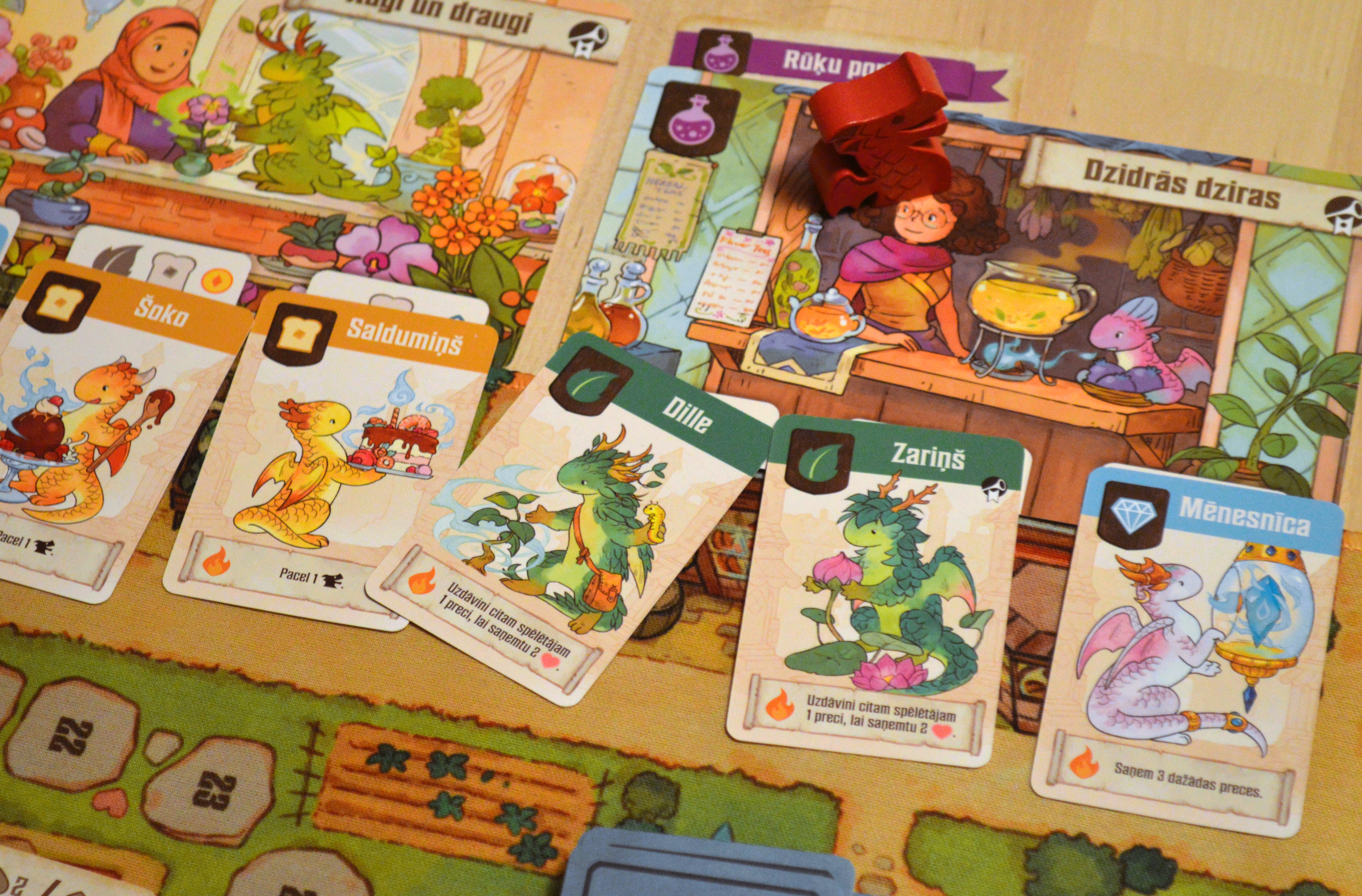 Flamecraft. Якобы семейная и даже детская игра на размещение рабочих с милейшим артом и кастомными фигурками дракончиков. Сыграли с семилетним сыном… и, вот хоть убейте, не понимаю целевую аудиторию. Для детишек и даже обычных игроков принцип активации локаций уж очень мудрёный. Я всю партию водил пальцем по памятке, чтобы не сбиться.