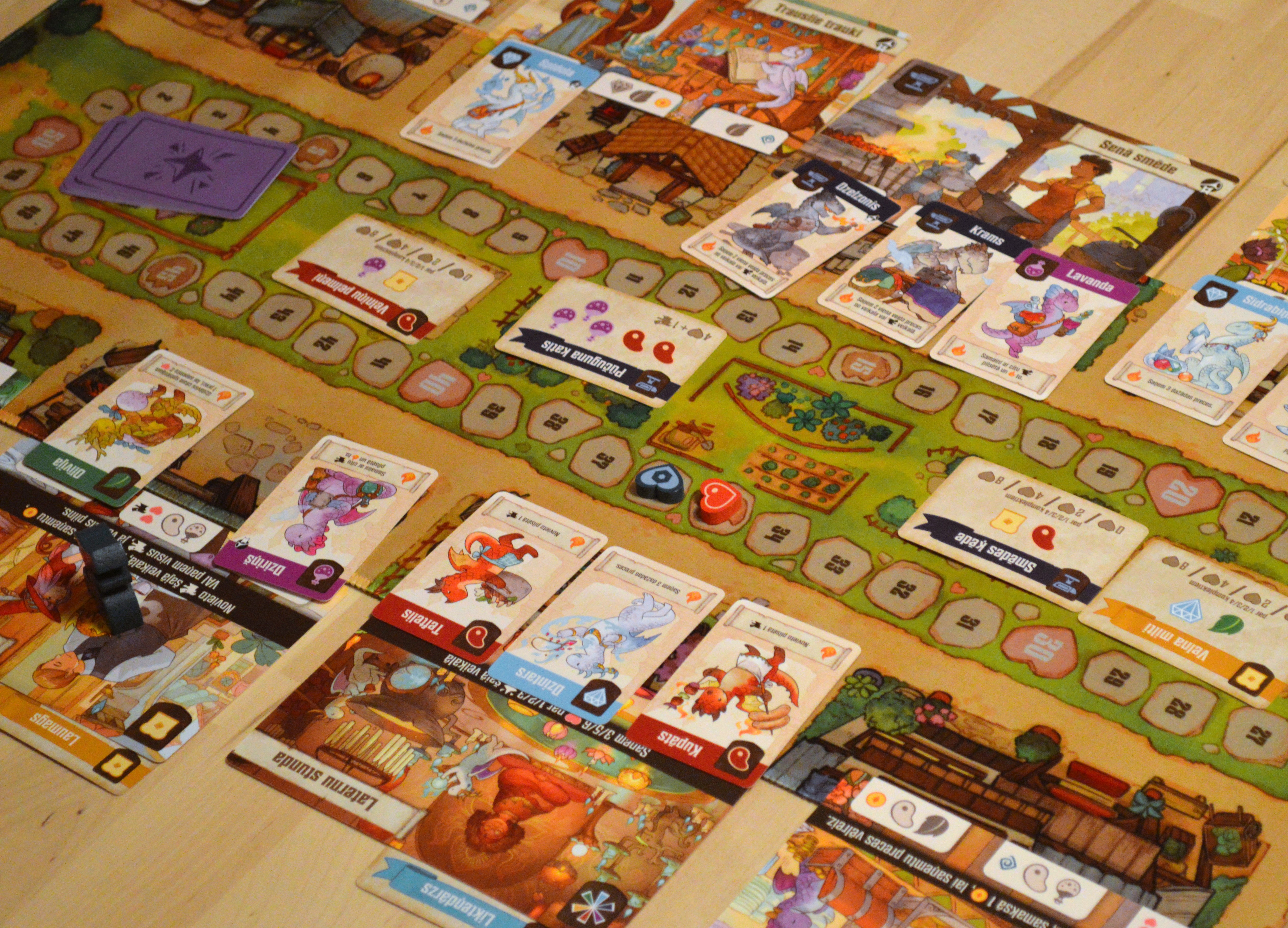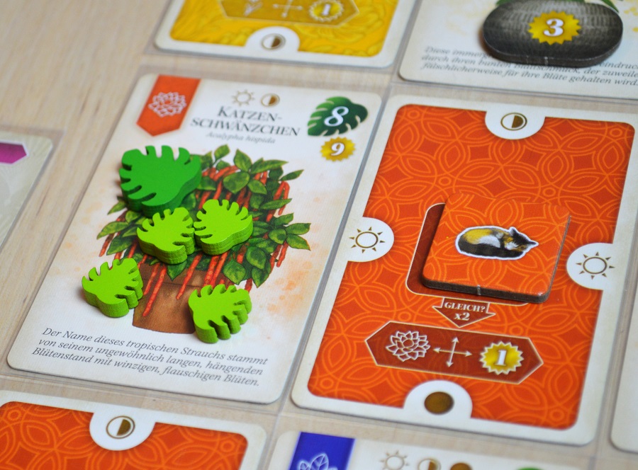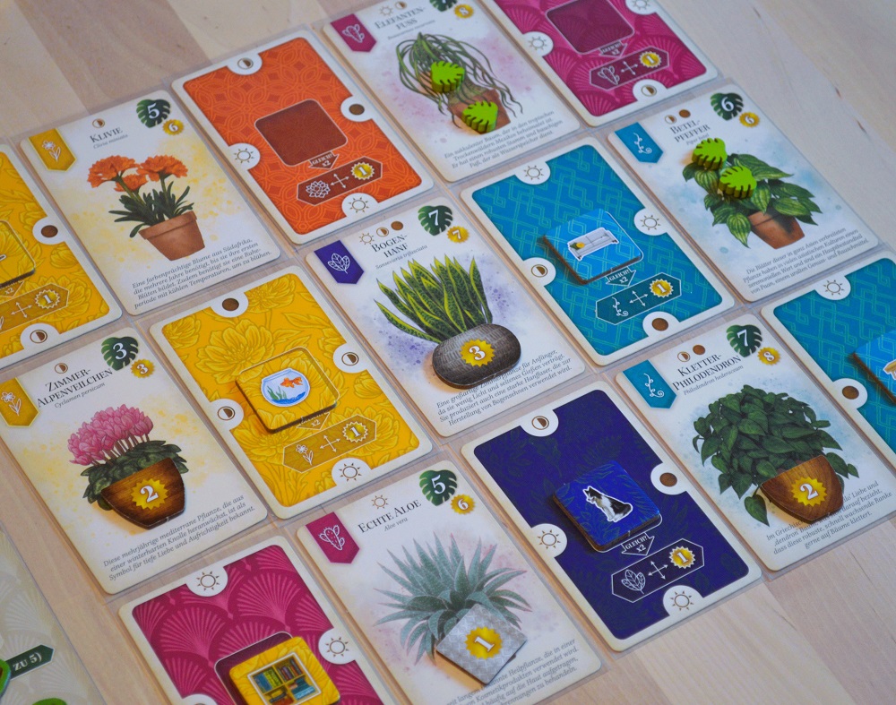 Рандом рынка немного правится жетончиками лайков (аналог шишек в Каскадии), а очки зарабатываются на эффективном размещении комнат, жетонов и накоплении фишек зелени на растениях.