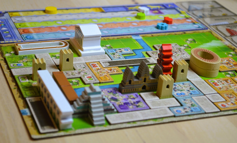 К слову, монументы не панацея. За них даётся 1 (редко 2) ПО, и такие же очки можно набрать за полностью обложенные тайлы зданий и за продвижение по трекам ресурсов (они двигаются при постройке зданий). Тут, кстати, скорится наименее успешный трек, поэтому желательно следить за символами на постройках и качать треки более или менее равномерно.