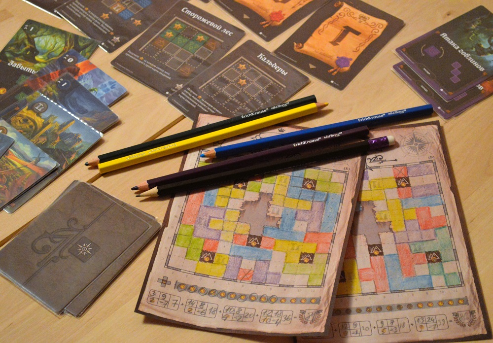 Есть, конечно, небольшая ложечка дёгтя – это качество компонентов. Картон тонкий, тайлы с видимыми заусенцами и острыми углами, а вместо треков или жетонов для подсчёта очков унылые чёрные карты, добавляющие ненужной возни.