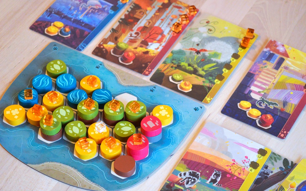 Harmonies. Образцовая семейка, зашла на ура. Есть пересечения с Каскадией, но параллельно играл в обе, и желание от какой-то избавиться не возникло. Наиграно уже ~20 партий – красиво, в меру мозголомно, вариативно. На двоих как будто не хватает прокрутки рынка (иногда он стопорится), но и в этом что-то есть – ты как бы пытаешься быстрее перестроиться и в то же время не хочешь открывать новую карточку, которая может подойти сопернику. 8/10.