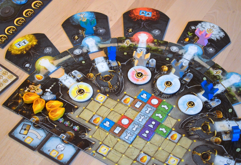 Via Magica. Обновлённая версия Rise of Augustus в компактной коробочке и с темой магических порталов. По сути – бинго или лото, где символы на вытащенных из мешка жетонах помечаешь ограниченными кристаллами на своих картах. Как только закрыл все символы – применяешь свойство карты, а в конце за неё получаешь очки. Приятная быстрая семейка, взял для игры с ребёнком. 7/10.