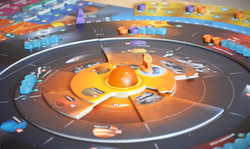 Говоря о маршрутах, крутящееся поле – это однозначно не шестерёнки из Tzolk’in, но зато оно добавляет солнечной системе жизни и динамики. Приятно, когда удаётся подгадать с проворотом и, тем самым, сократить путь до желаемой остановки. Или же, наоборот, увести от оппонента нужную ему комету или же заблокировать его астероидами.