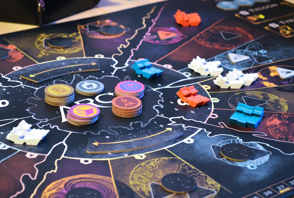 Вот такая игра. Пытаемся как-то распланировать руку, перехватывать инициативу и бронировать подходящие амбиции-цели, чтобы потом в них преуспеть. Для этого активно строим корабли и здания, летаем и сражаемся, собираем заветные жетоны ресурсов-навыков, охотимся за вкусными картами с рынка. Заканчивается данная космическая потасовка после 5 раундов или в конце раунда, в котором кому-то удастся набрать определённое количество очков (на троих требовалось 30).