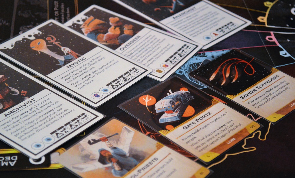 Arcs – ожидаемо агрессивная стратегия в сеттинге космооперы. Как и предполагал, чтобы полностью прочувствовать ключевую механику, весь арсенал возможностей и прочие нюансы данной игры, потребуется не одна партия. Мы пока сыграли дважды на троих, первый – просто в базу, а второй – с лидерами и дополнительными карточками свойств (lore).