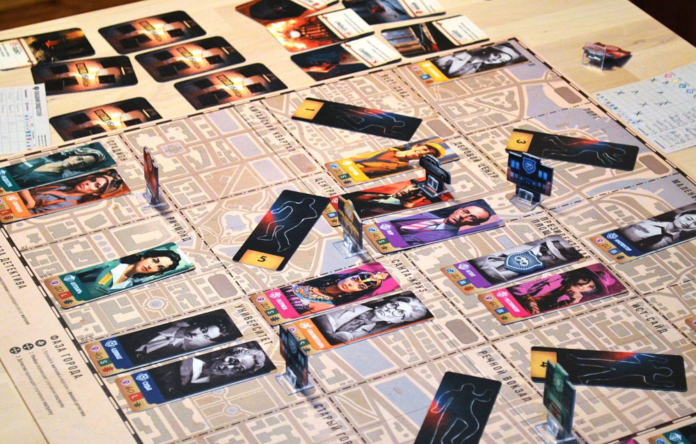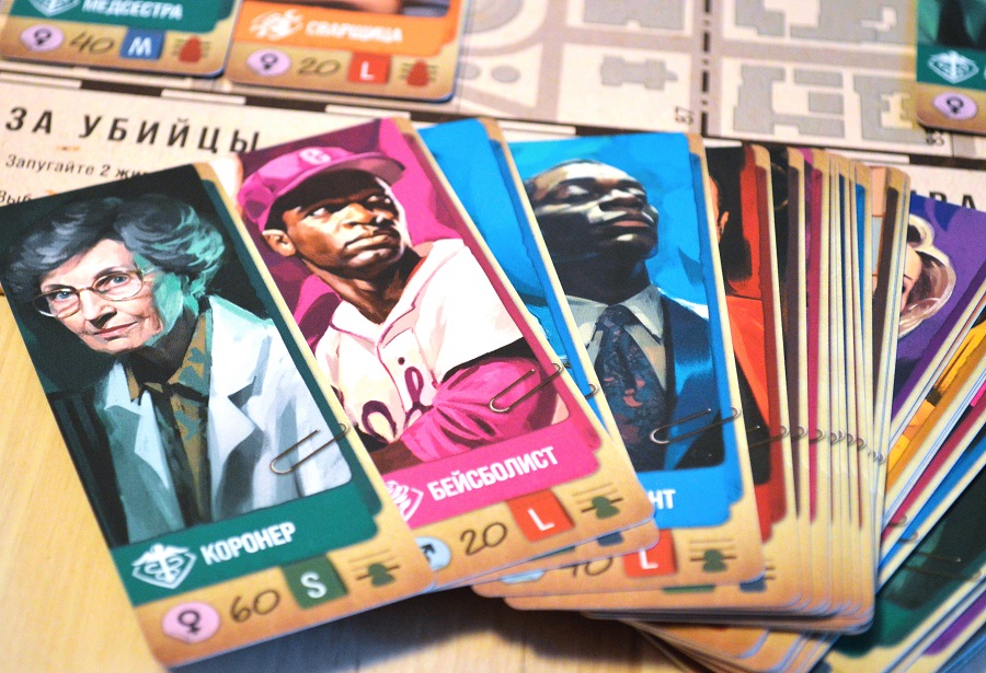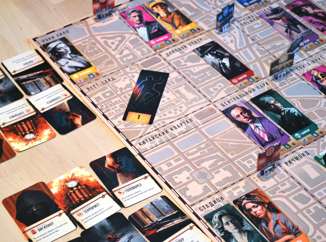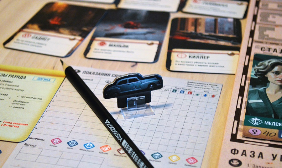Но и это ещё не всё. Набравшись опыта, можно попробовать менее просчитываемый, но более кинематографичный вариант “интуиция”, в котором задействуются карточки специальных действий/эффектов как для убийцы, так и для детектива, а также сценарии с определёнными мотивами и раскладками жителей.