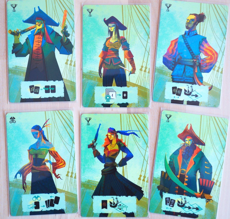 После этого остаток колоды тасуется, и игрокам раздаётся по 9 карт. Последний штрих – каждому следует выбрать по карте пирата – персонажу с полезным свойством.
