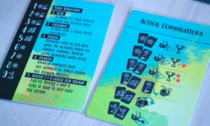 Во время партии приходится постоянно оценивать ситуацию на поле, проверять, сколько карт в стопке Кракена, и прикидывать, что может быть в руке у товарища. Разумеется, если есть опыт игр на взятки, то освоить Sail получится без проблем. Но всё равно желательно посмотреть какое-нибудь коротенькое видео, так как пару моментов правила объясняют совсем уж поверхностно.