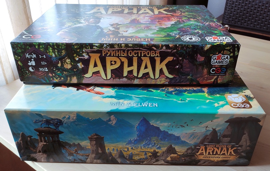 Lost Ruins of Arnak: Adventure Chest. Придушил жабу и выложил за коробку с новым дополнением 74 евро. Дорого, конечно, но Арнак у нас играется регулярно и, надо сказать, что с каждой новой партией как будто бы нравится всё больше.