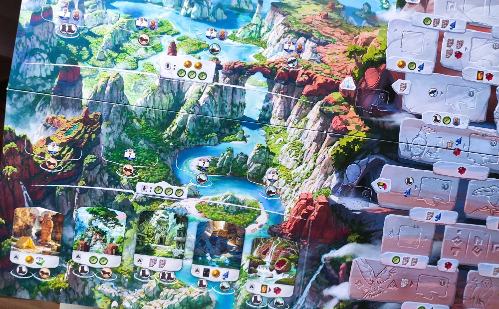 Что касается дополнения, то основная его фишка – новое двухсторонне поле с более навороченными треками храмов. Ну, и в нём идёт немножко уже знакомых компонентов: монстры, идолы, локации. Новых карточек нету.