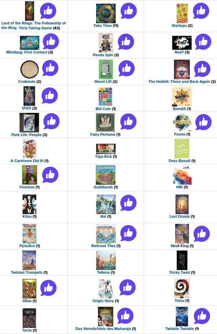 Если говорить о каких-то тенденциях, то в топе до сих пор “трики”. Из-за них в общей сложности накопилось около 100 партий. Вот, собственно, список сыгранного, палец вверх рядом с тем, что понравилось: