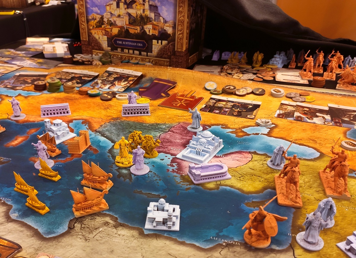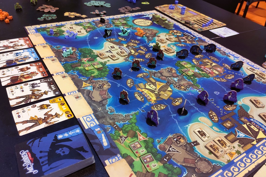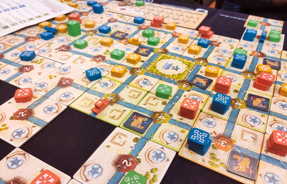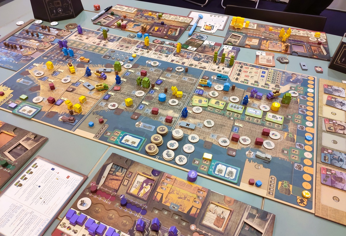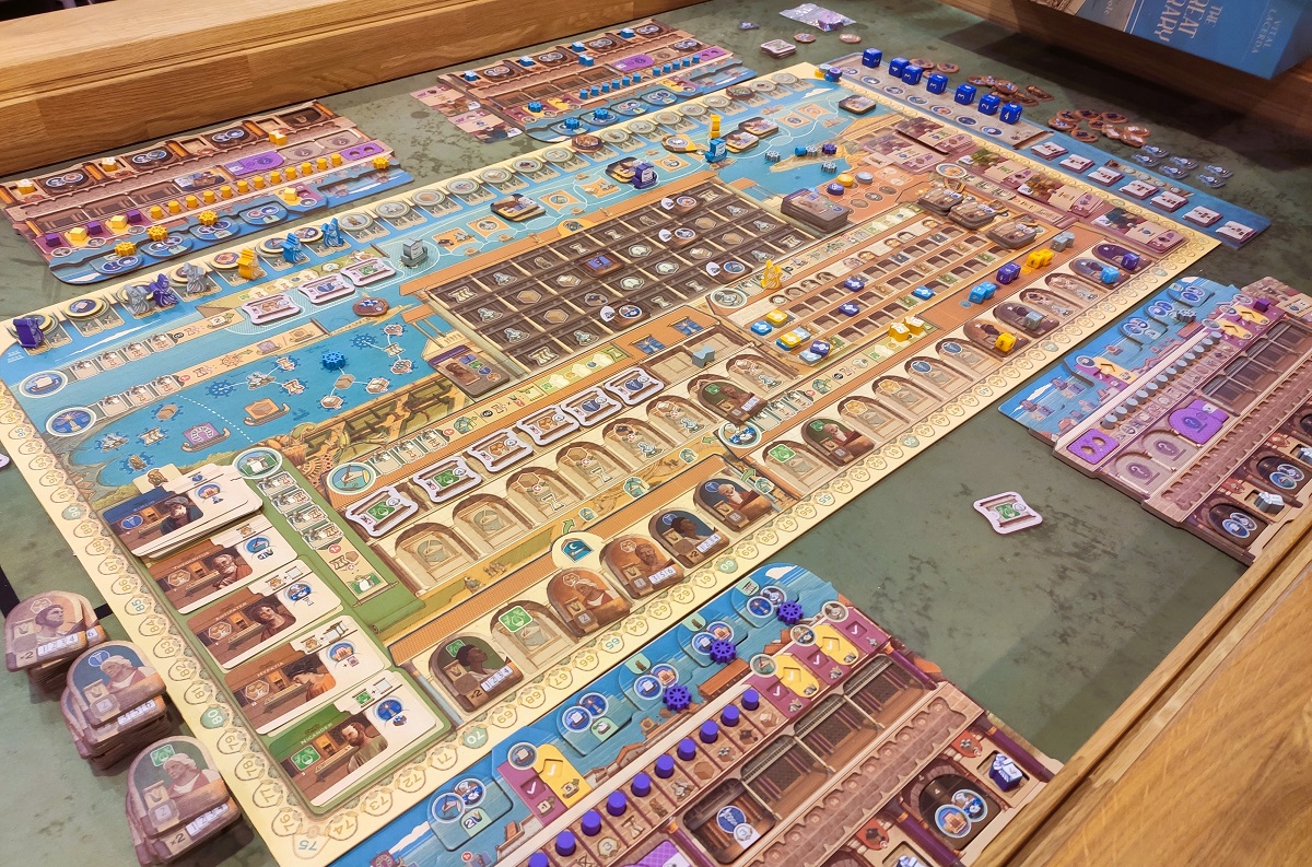 В какой-то момент у всех появляются лодки, которые можно двигать, чтобы блокировать тайлы и не давать соперникам ставить на них свои фишки (где-то мы уже это видели). В конце же начинается адский скоринг, так как в получившемся городе размером со стол нужно посчитать каждый тайл по маджорити, и не забыть про специальные ячейки рынков и персональные условия начисления очков. Это было очень душно, 6/10.