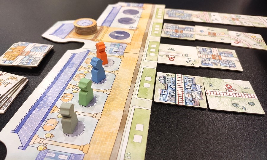 Сложность в том, что нужно не только стараться создать наиболее эффективную сеть из дорог, но и постоянно бороться за тайлы с местами под фигурки автомобилей, поездов и человечков. Ведь разместить их можно только в тех раундах, когда выйдут соответствующие жетоны действий. И желательно их ставить на непрерывные пути, ибо за это полагается больше очков.