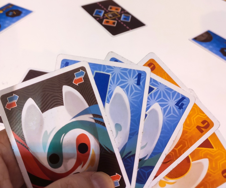 Kitsu. Тоже типа трика, но на чётное число игроков, так как тут всегда противоборствуют две команды. В колоде две масти и немного спец-карт. Цель – продвинуть свою фишку по тропинке до конца. Двигается она на разницу сыгранных карт двух кланов.