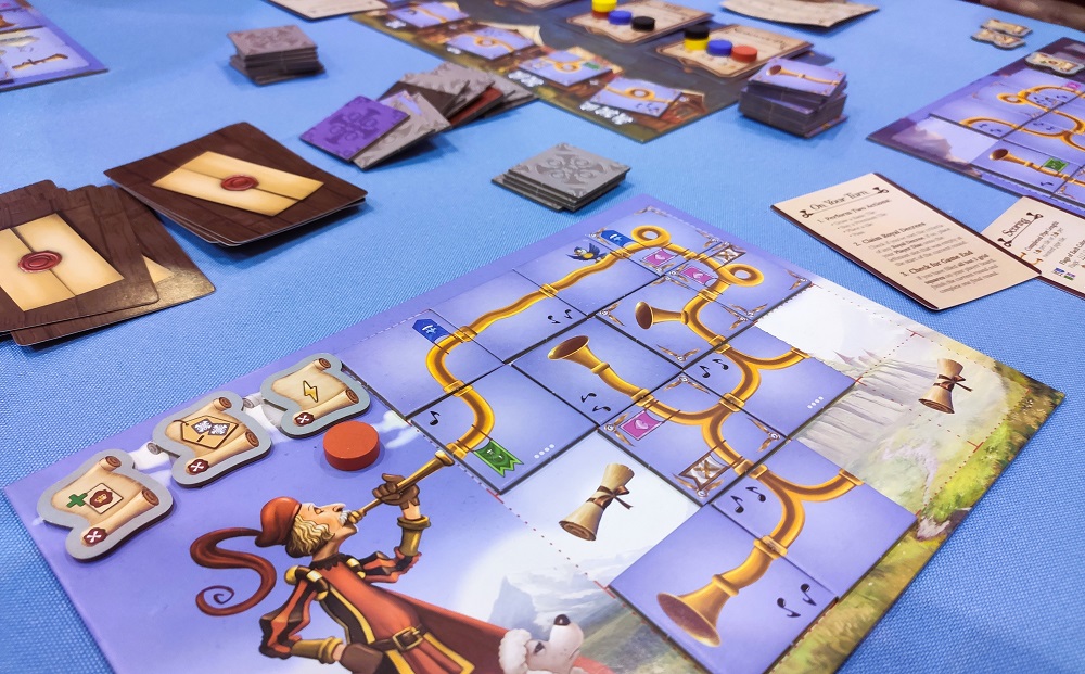 Очки даются за длину, вернее, количество тайлов от каждого раструба (конца) до музыканта. Есть ещё птички, которые приносят ПО за ноты на соседних тайлах. Ну, и стандартные общие и личные цели. Выглядит забавно, но особо не цепляет, разве что виражами из труб, 6/10.