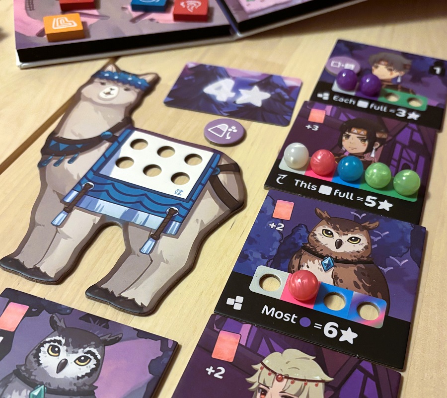 По большому счёту, вот и вся игра. После 5 раундов считаем очки за все размещённые на персонажей шарики согласно их ценности (от 1 до 5). Плюс, получаем дополнительные ПО за свойства персонажей и за альпака-цели (нужно копить на альпаке шарики одного цвета).