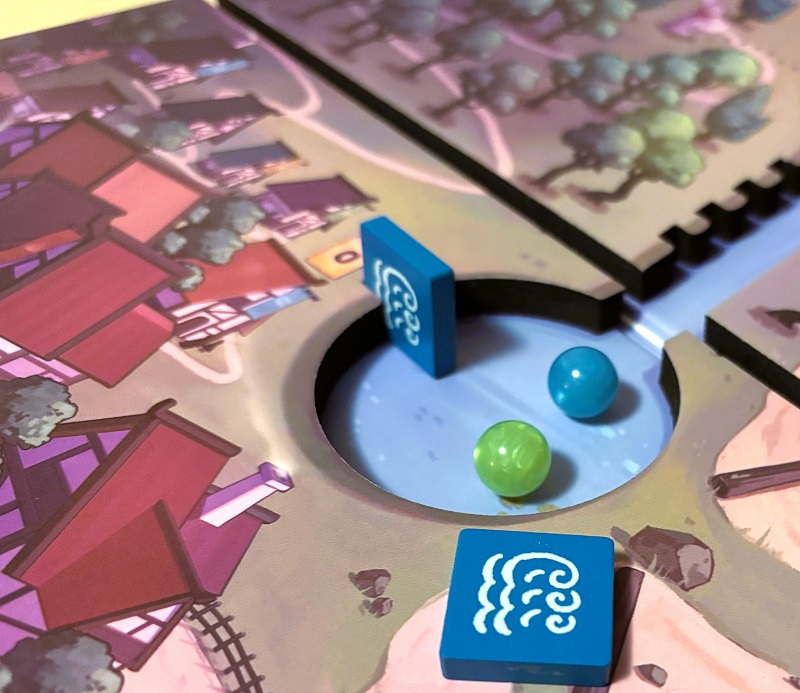Если честно, то игру изначально покупал для партий с сыном. Думал, что весь фан будет лишь в том, что шарики скатываются по рекам, словно машинки Hot Wheels по трассам. А всё, что вокруг этого, окажется довольно пресным. На деле же игрушка намного мясистее и кризисней. Друзья сказали, что потеть тут приходится не меньше, чем в каком-нибудь евро. И действительно, в неё можно играть на расслабоне, наслаждаясь гонками шариков, но тебя всегда уделает тот, кто играет вдумчиво.
