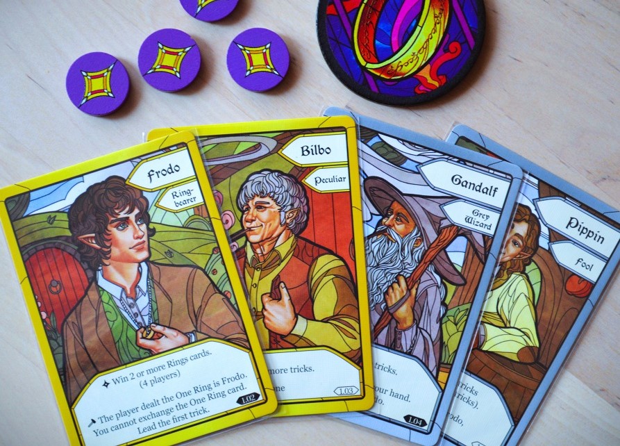 Fellowship of the Ring: Trick-Taking Game. Продолжение идей Crew, обёрнутое в сеттинг Властелина Колец. С трудом удалось пройти свою коробку, лишь на пароме по дороге в Германию и обратно, – там уже людям просто не было, куда деваться. Скоро выйдет вторая часть, но себе решил не брать, так как за два Crew и первую часть уже как будто подустал от такого. Первый Crew – восторг, второй – уже не такие яркие впечатления, Fellowship – умеренный позитив.
