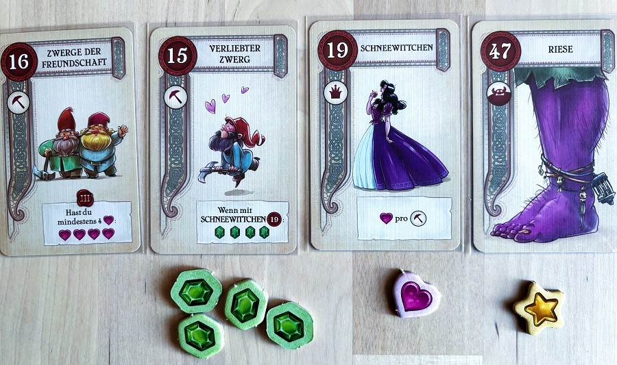 3 Chapters. Прикольный филлер+, где всё действо делится на три части: в первой по кругу драфтим сказочных персонажей, во второй играем их во взятки (после чего возвращаем), в третьей получаем награду за собранных персонажей. Нравится тем, что победа во взятках тут не самое главное, и очки можно набирать, умело подставляясь и собирая комбинации на конец партии. Жаль, что не удаётся играть чаще, на это две причины: не дотерпел и взял немецкую версию, а какой-никакой текст тут имеется; для полного раскрытия нужно 4 человека.