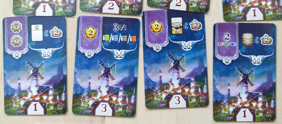 Кроме выхода карточек и восьми персонажей вариативности тут не то, чтобы много (это единственное, что настораживает): можно поэкспериментировать, какие бонусы и в каком порядке открывать на планшете; жетонов технологий и карт заказов больше, чем требуется на партию; и есть ещё так называемые карты фестивалей, они тянутся из специальной колоды случайно, не пристраиваются в колонку, а имеют одноразовый эффект на всех и бонус тому, кто её купил.