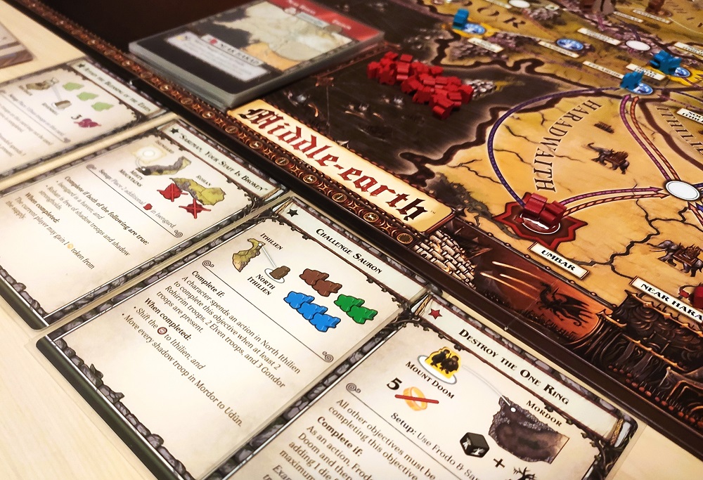 Всё действо развивается на карте Средиземья, где команде персонажей требуется сопроводить Фродо и Сэма к горе Ородруин и совершить победный бросок кольца-кубика. Но, помимо этого, на партию выбирается ряд дополнительных целей, которые необходимо выполнить до основной.