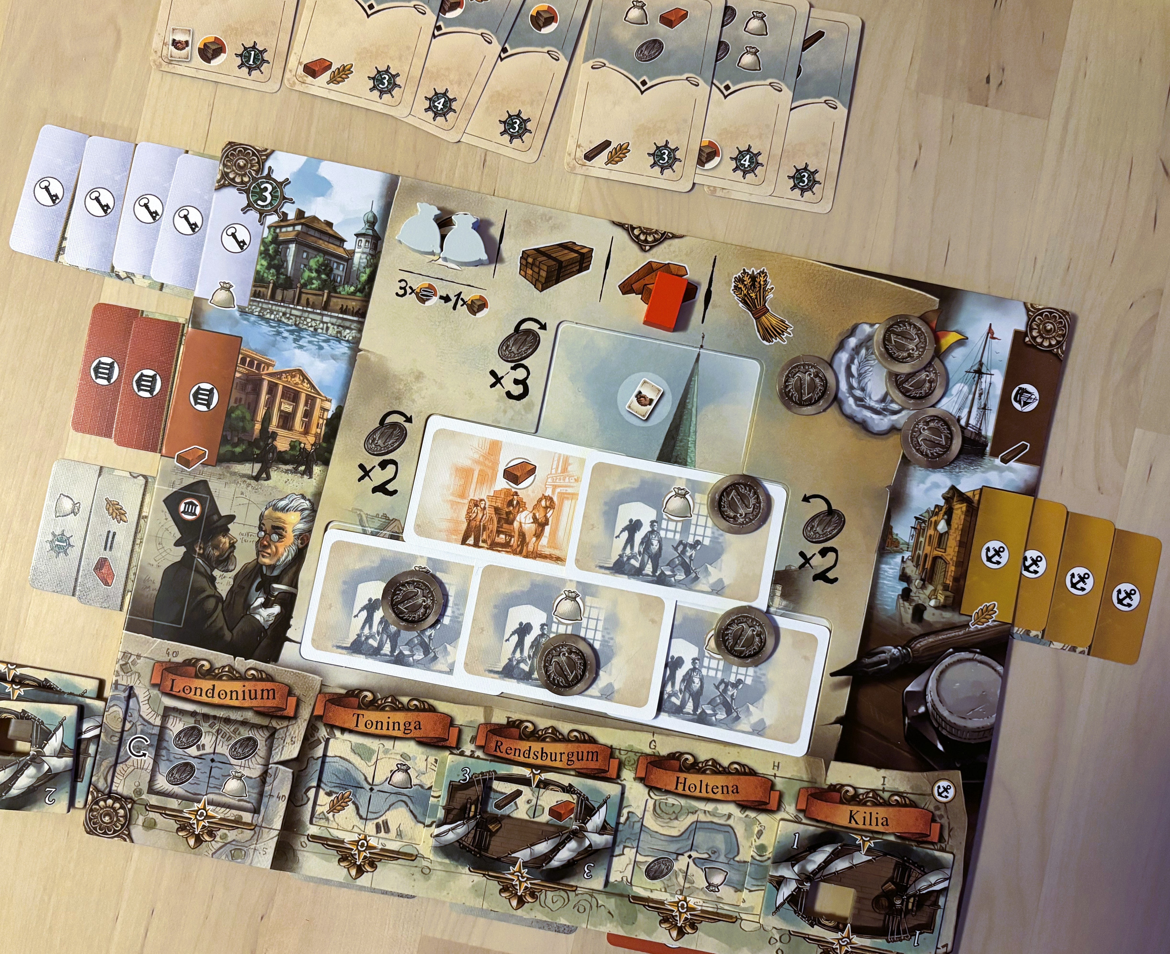 О Kilia никто не говорит, не хвалит из каждого утюга, поэтому ожиданий, само собой, никаких не было. И от этого вдвойне приятно, когда игра оказывается годной. Во-первых, внешний вид располагает к радующему глаз процессу за счёт фигурных деревях товаров и трёхслойных планшетов. Но особенно мне нравится фишка с реальным движением тайла-кораблика по каналу и сбором урожая со своих складов, – прям детский восторг. Немаловажно и то, что игра не занимает на столе много места, и на двоих можно уложиться за минут 40-50.