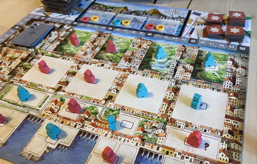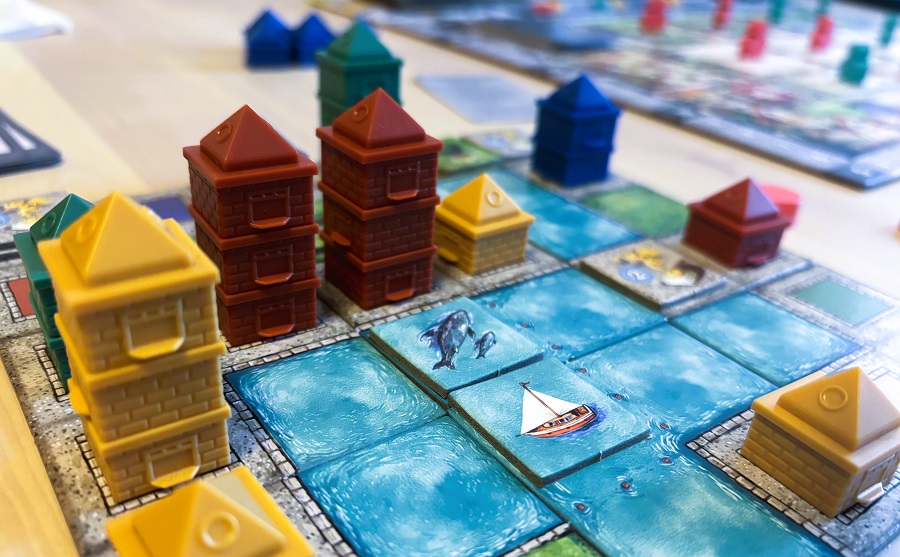 В каждой из четырёх зон доступен лишь один лот, поэтому нужно для себя решить, что в какой момент важнее и нужнее: тайлы для расширения города, цветные этажи, жетончики для сетов или карточки целей.