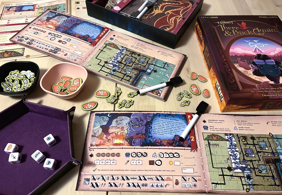 The Hobbit: There and Back Again. Уже писал о первых положительных впечатления с выставки, но тут мы уже начали свою копию. Классный, уютный и стильно оформленный roll & write, который отличается от других здорово проработанными и где-то даже атмосферными сценариями.