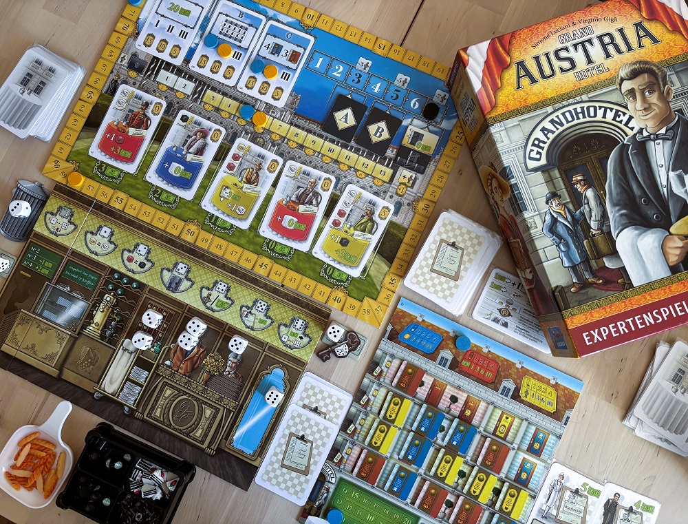 Grand Austria Hotel. Перевалил за 20 партий. Никогда не забуду, как после пары пробных раундов на четверых прям сильно разочаровался, но потом всё же рискнул дать игре второй шанс, и теперь это уже классика и любимое евро на двоих, 8/10.