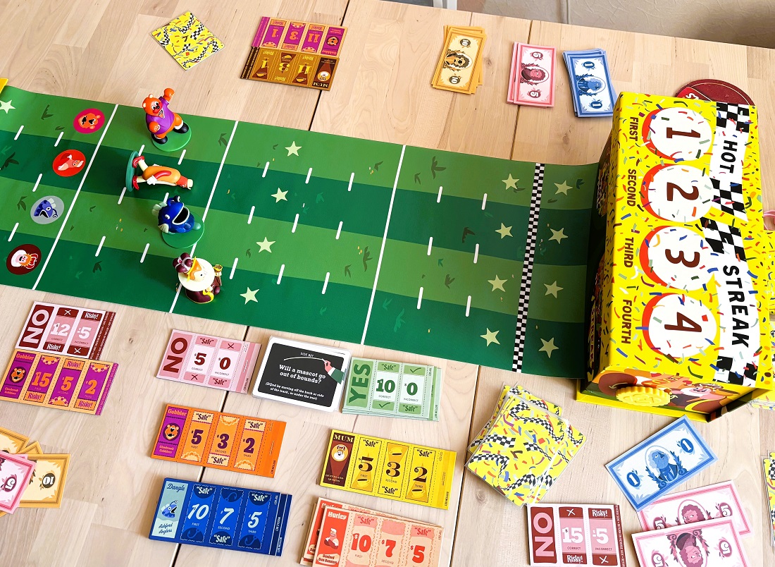 Что касается процесса, то игрушка отдалённо напомнила Camel Up с щепоткой модного ныне “авто-батлера”, ведь маскоты двигаются согласно карточкам, вскрытым в случайном порядке из заранее частично известной колоды.