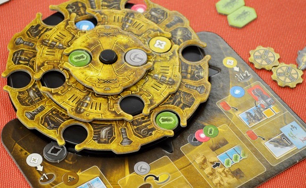 Suna Valo. Interesting duel from Ode (La Granja), where you activate columns to fulfill orders and upgrade your personal board. Cards are purchased from three mini-markets: the common, your own, or your opponent's. And you set the prices for your own cards!