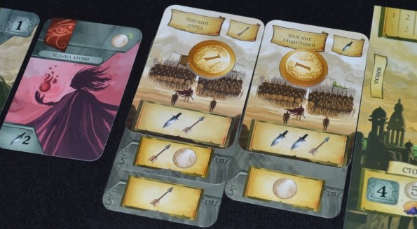 Воевали только изредка: чтобы заработать влияние, разделаться с картой, уничтожающей маркеры вклада в строительство собора, и под конец партии, дабы поднабрать оков. Личные цели тоже толком никто не выполнил. Катя про свою так вообще забыла, положив её рядом с картами, не участвующими в игре.