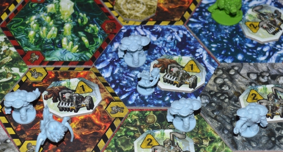 Кстати о правилах, недавно открыл для себя два момента, по которым играли неправильно, может, кому-нибудь пригодится. Первый: на руины только что открытых гексов кладётся по два бонусных жетончика (я думал, что, как на домашний, по одному, и только на центральный три). Второй: технология, которая позволяет тянуть кубик из мешка каждый раз, когда получаешь кристалл, работает только при генерации кристалла действием на планшете/карте (т.е. за убийство фигурки оппонента кубик не тянется).