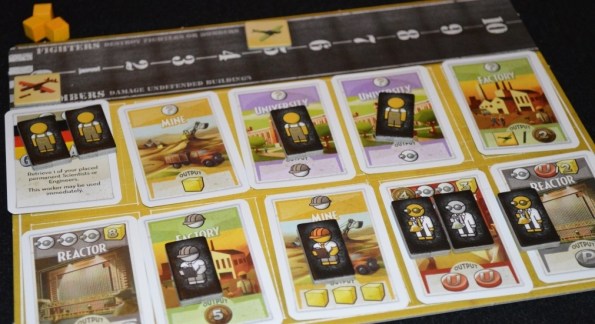 Потом Катя предложила The Manhattan Project. Играли с мини-дополнением «Нации», я — за Францию (за учёного можно брать карту бомбы), Катя — за Германию (за двух рабочих можно вернуть одного инженера или учёного, и тут же им воспользоваться снова). Думали, что всё пойдёт мирно, мол, сосредоточимся на собственных ресурсных движках, и всё такое, — но не тут-то было. И шпионаж в ход пошёл, и угрозы в виде наращивания силы бомбардировщиков, в общем, расслабиться не получилось. Партия завершилась, как всегда, победой одного за один ход до победы другого. Хорошая игра, которая, благодаря тесному взаимодействию предлагает интересные тактические решения.